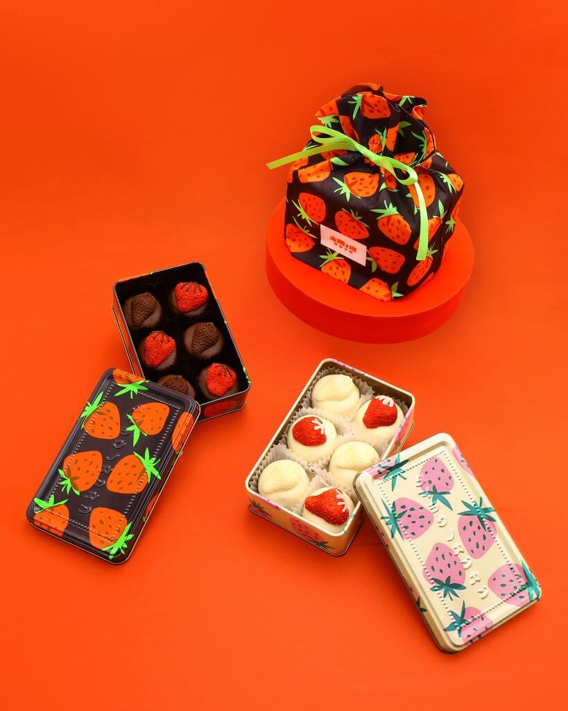オリジナルいちご柄巾着でお包みした2種セット商品をご用意いたしました。